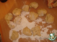 Настало время формовать розочки. Для этого тесто делим пополам, а каждую половинку разделяем на 16 кусочков. |