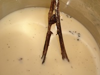 Молоко нагреть почти до кипения, опустив туда ванильные зёрнышки и сам стручок. Стручок вынуть (я ещё и процедила молоко). |