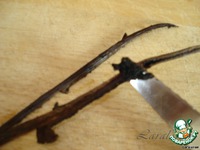 Итак, всё просто! Берём стручок ванили, разрезаем его пополам и ножом "выцарапываем" крошечные зёрнышки. |