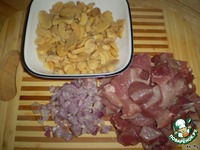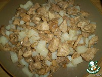 Начинка мясная.Нарезать небольшими кусочками мясо,обжарить его,добавить лук и грибы,посолить и поперчить,дожарить до готовности мяса. |