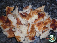 Измельчаем наш корж, кусочки где-то 3*3 см. |