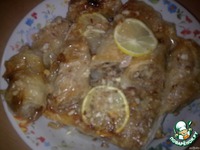 Готовую баклаву складываем в удобную посуду, заливаем сиропом, и сверху укладываем лимон, порезанный на кружки. Если баклава получилась большая, можно разрезать на две части. |