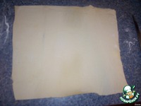 6 шаг - Тесто размораживаем и раскатываем на прямоугольные или квадратные пласты. Если оно уже продается пластами, еще лучше (мое тесто было скатано рулоном) |