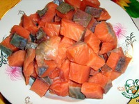 Порезать кубиками рыбу. |