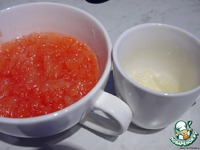 Грейпфрут очищаем от кожуры, пленочек и семян, мякоть измельчаем на кусочки и важно в этом процессе собрать весь сок. К мякоти добавляем сахар и перемешиваем, сахар должен растаять. |