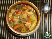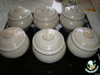 Заливаем водой или, если есть, бульоном, так чтобы покрыло все, что в горшочке. В каждый горшочек добавить примерно 1/2 ч. л. соли. |