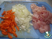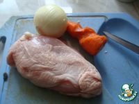 Грудку (в моем случае), морковь, лук режем на кусочки не очень крупно. |