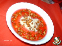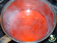 Теперь займемся соусом. В горячую воду добавить клюкву и кипятить несколько минут. Ягоды подавить ложкой. Процедить. |