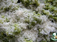 С отваренной капусты брокколи слить воду. Размять в пюре (можете применить блендер). Добавить 20 гр тёртого сыра, перемешать. |