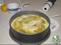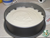Сверху ложкой выливаем манговое желе, разравниваем лопаточкой и хаотичными движениями делаем рисунок абстрактный. Отправляем в холодильник минимум на 4 часа, я это делаю на ночь. |