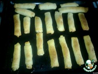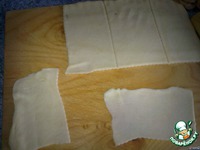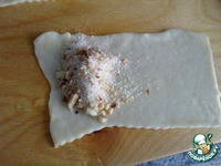 На один конец прямоугольника положить начинку и скатать трубочку. |