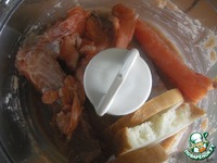 Вторую половину рыбы измельчаем с ломтиками батона, немного смоченными сливками. |