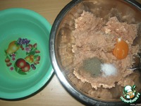 Смешиваем фарш с солью, черным перцем и яйцом. |