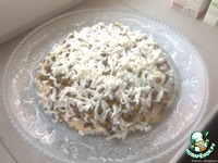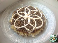 Итак, приступим. Варим картошечку и, когда остынет, трем на крупной терке, перемешиваем с небольшим количеством майонеза и выкладываем на блюдо. Пробуем на соль. |