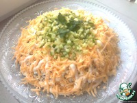 Теперь берем желток. Также трем на мелкой терке и выкладываем поверх белка. Поливаем майонезом! |