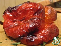 -достаем перец из духовки и кладем в полиэтиленовый пакет, приблизительно минут на 10, затем чистим и режем произвольно. |