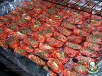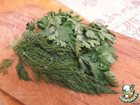 -зелень шинкуем мелко-мелко. -помидоры солим, перчим и аккуратно посыпаем рубленой зеленью |