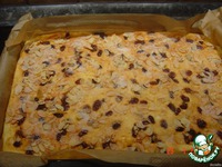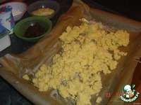 2. Крошки высыпать на смазанный маслом противень или в глубокую прямоугольную форму (30х40 см). |