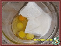 Слова автора. [b]Тесто-[/b] 4 яйца, 500 г творога нежирного 1-7%, 1 стакан сахара (250 г)- готовим обычным смешиванием продуктов миксером. Аккуратнее получится именно из нежирного творога. |