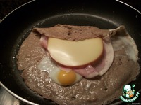 По рецепту яйцо должно остаться в серединке, но у меня остался там сыр:), что тоже вполне допустимо. Закрываем крышкой сковородку и убавляем газ. Ждем пока яйцо будет готово. |