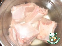 Промытое мясо повторно заливаем водой и опускаем луковицу с кожурой, для получения прозрачного и не мутного бульона. Готовим до закипания на максимальной мощности. |