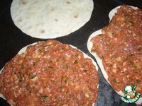Для ламанджо, по идее, нужен бараний фарш. Но баранину у нас редко можно приобрести. Поэтому я частенько использую обычный говяжий фарш - вкус от этого не страдает. Итак, берём полкило фарша, добавляем в него 1 большую (или 2 средние) хорошо перемолотые в мясорубке луковицу и чеснок, меленько порезаную зелень (петрушку, кинзу, базилик, можно всё вместе, а можете убрать то, что вам не нравиться), добавляем соль, перец по вкусу. Иногда я добавляю в общую массу меленько порезанный горький перец - но это уже по вашему желанию. Выливаем в фарш томатное пюре. Если нету пюре - разбавьте томатную пасту до консистенции сметаны, а иногда я перекручиваю свежие помидоры - тоже прекрасно подходит. Хорошенько всё перемешиваем. Фарш должен получиться жидким, как густой соус. |