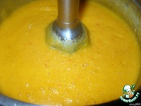 20 минут прошло. Огонь на время гасим. Лавровый лист достаем. Перебиваем блендером овощи в однородное пюре. |