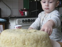 Вытаскиваем еще горячий корж из формы, в холодном виде он плохо выходит. Тут же на горизонте появляются дегустаторы. |