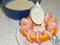 Апельсиновые "розеточки" украсить креветками и залить в них наш соус. |