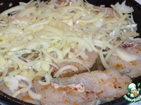 На рыбу посыпаем "специи к рыбе" и засыпаем рыбу луком. |