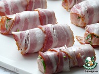 Ужин тет-а-тет, не смотря на изысканность и торжественность, не должен быть чересчур обильным. Ведь романтический ужин - это не праздник живота, а некая прелюдия для двоих, помогающая расслабиться и забыть о повседневной суете и проблемах. И поэтому я решила приготовить такое лeгкое, вкусное и необычное блюдо... Рыбка получилась нежнейшая и сочная, благодаря соусу, в котором она мариновалась, а бекон придал пикантность и подкопченность сeмге. Это блюдо лучше всего подавать со свежим зелeным салатом, и бокалом красного вина.