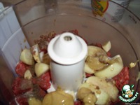 В настоящем рецепте мясо должно быть порезано на мелкие кусочки, но можно и воспользоваться таким чудесным помощником как кухонный процессор. Итак, режем на мясо на кусочки. |