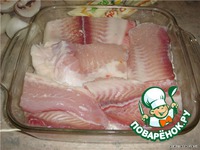 Отварить рис почти до готовности. Выложить в форму, положить на него рыбу. Полить майонезом. |