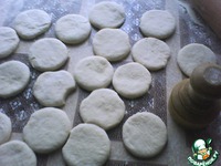 И вырезать круглые кусочки (стаканом), раскатать размером в десертную тарелку. |