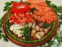 Продукты для приготовления гарнира "Гречка с овощами". |