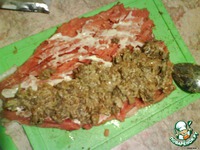 Раскатываем слоеное тесто, выкладываем на него рыбу. |