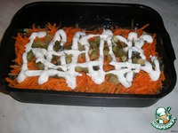 Покрываем натёртой на тёрке морковкой. |