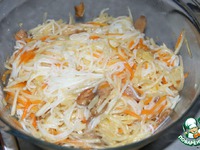 добавить к нему тертую морковь, быстро перемешать, добавить грибы с соком (если они были мороженые), перемешать, |