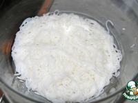 Рисовую лапшу откинуть в сито, дать немного стечь воде. |