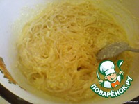 Сковородку смазываем сливочным маслом, посыпаем манной крупой и выкладываем смесь. Верх бабки смазываем желтком. Ставим в разогретую духовку и запекаем. |