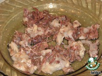 "Собираем" мяско в кучку и отправляем в бульончик. |