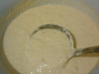 Теперь берем тесто поварешкой и наливаем на горячую сковородку с растительным маслом на дне. |