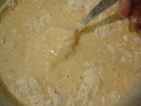 Всыпаем муку и начинаем интенсивно работать ложкой. |