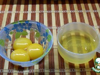 Белки убрать в холодильник, а желтки растереть с половиной стакана сахара (сахар должен раствориться, поэтому можно немного взбить миксером). |