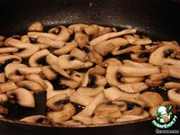 На сковороде нагреваем оливковое масло и растапливаем в нем сливочное. Выкладываем грибы и поджариваем на среднем огне до мягкости и коричневатого цвета. Снимаем сковороду с огня. |