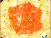 Когда патиссоны практически готовы, добавить к ним помидоры, посолить, потушить 5 минут. |