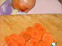 Морковь порезать кружочками, лук - полукольцами и пассеровать отдельно в небольшом количестве масла |