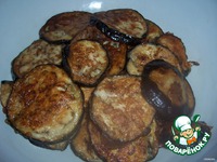 После чего промыть, обсушить и обжарить на масле (чтобы не впитывало много масла, перед жаркой обмакнуть кусочки баклажана в белок). |