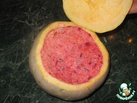 Срезаем у тыквы крышечку, вынимаем семечки и мякоть (отложить, она нам понадобится). Подчистить ложкой, оставить совсем немного на стенках |