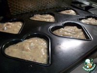 Формочки смажем маслом и заполним тестом. Маффины не поднимутся сильно, поэтому можно заполнять до краев. |